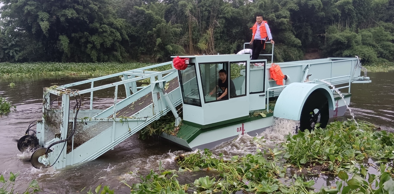 鹽城市鹽都區(qū)購(gòu)買(mǎi)的DFSHL110型全自動(dòng)水葫蘆打撈船